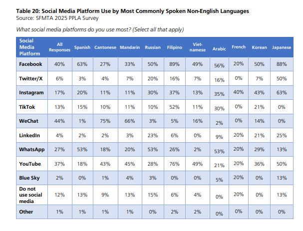 - There is some interesting data like “social media use by native language”, “routes with a higher-than-average share of low-income or minority riders”, “minority block groups (higher proportion of racial minority than average)”, “low-income block groups”