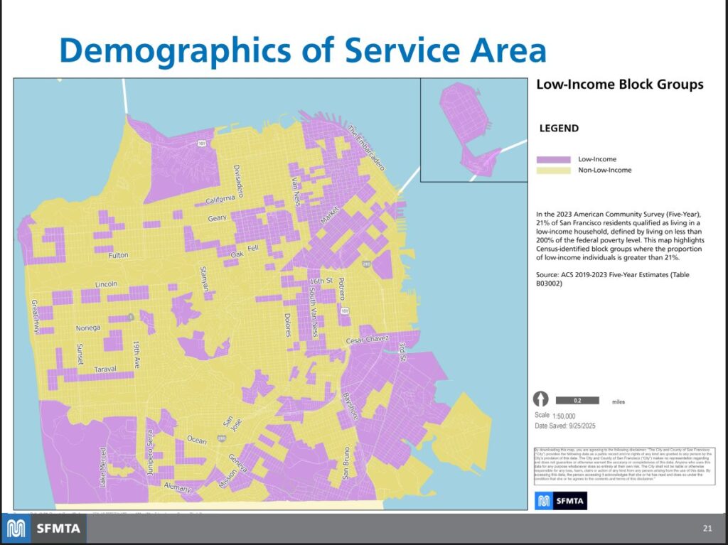 - Title VI is federal requirements for SFMTA to be fair and equitable on race and class dimensions in how it delivers transit service