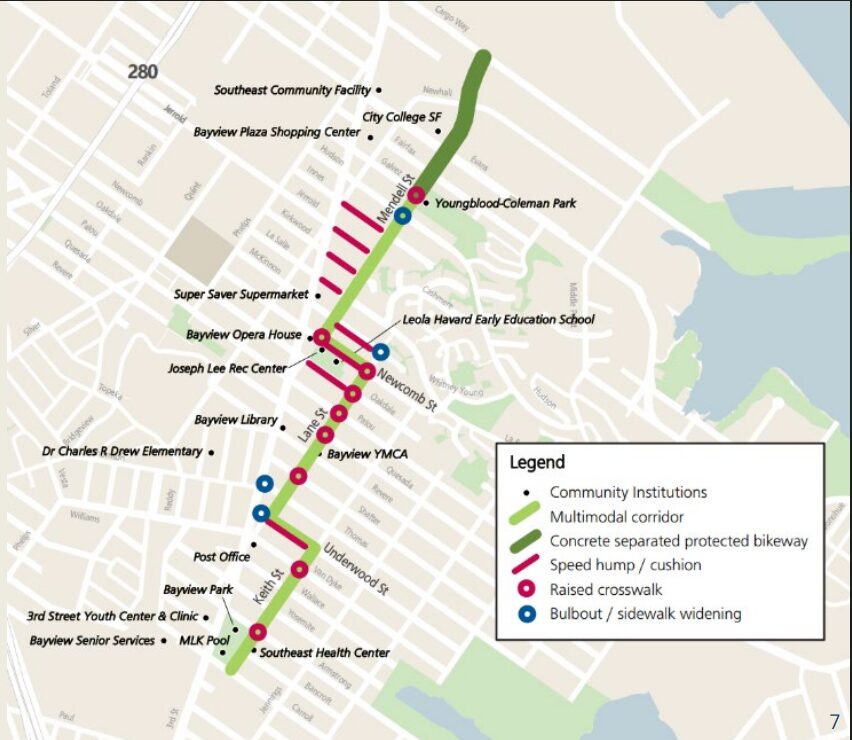 - This is a biking and walking path going through the Bayview, in response to complaints about unsafe driving speeds and making streets safer as part of the 2020 Bayview Community Based Transportation Plan.